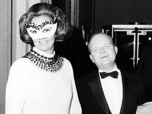 This Easton house in Dallas shows a skirted table surrounded by tiger skinned stools. Again, it is piled high with books. Also notice the cubbies above the doors are the same as at Balderbrae.