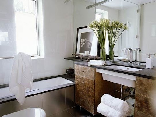 Gorgeous bathroom with unusual finishes.